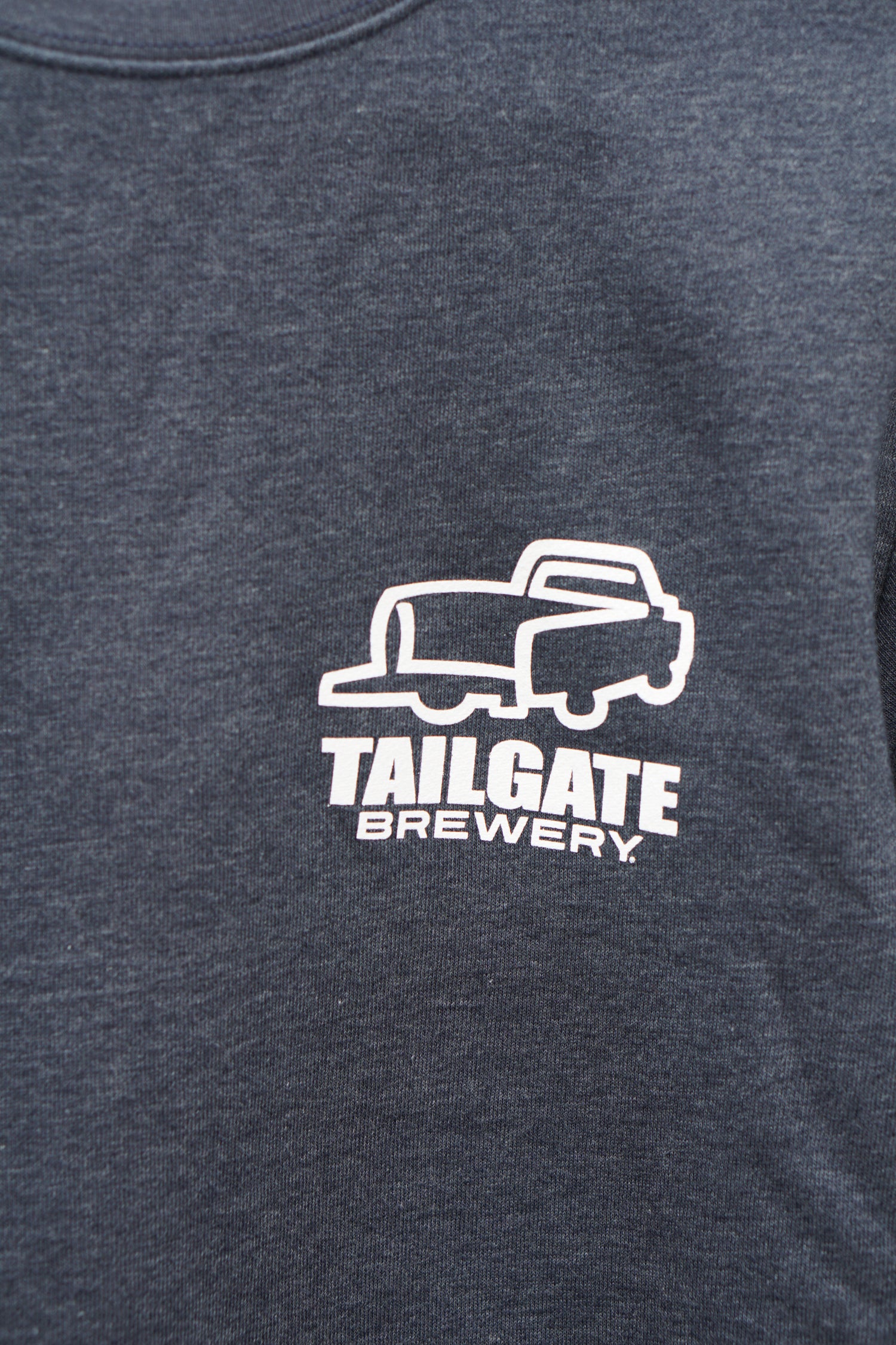 Keep warm, look chill in our super soft crewneck in a navy/dark gray with a white truck logo on the front.